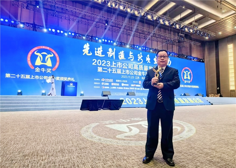 11月23日,2023中國上市公司高質量發展論壇暨第二十五屆上市公司金牛獎頒獎典禮在江蘇南通舉行。中廣核礦業榮獲“港股金牛獎”,公司董事會主席、首席執行官安軍靖出席頒獎典禮。