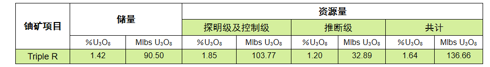 Triple R鈾礦礦體展布示意圖 Fission公司于2018年6月完成當(dāng)年冬季勘探工作。本次冬季勘探工鉆井36口,完成6947米鉆探工作量,本次勘探成果包括: (A) 使R780地段部分推斷級資源量轉(zhuǎn)化為控制級資源量,為項(xiàng)目預(yù)可研報(bào)告做準(zhǔn)備; (B) 擴(kuò)大1515W地段的礦體規(guī)模; (C) 采集礦區(qū)的工程地質(zhì)條件樣品。 目前Fission公司已經(jīng)開展夏季勘探工作,總計(jì)費(fèi)用預(yù)計(jì)640萬加元,總計(jì)147口鉆井(3425m)的鉆探工作量,進(jìn)一步升級重點(diǎn)礦化區(qū)R780E的資源量級別,聚焦?fàn)幦∧甑浊巴瓿深A(yù)可研報(bào)告。 Fission 公司旗下項(xiàng)目資源量