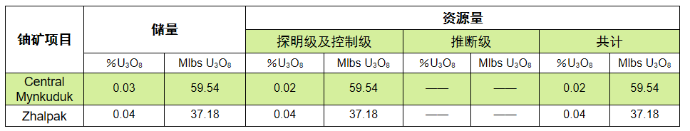 扎爾巴克鈾礦位于哈薩克斯坦南哈薩克斯坦省Shu-Sarysu盆地,于希姆肯特市以北500公里處;于2017年至2020年4月期間進行試生產,生產約200噸鈾。根據目前的生產計劃,扎爾巴克鈾礦的經營按在2022年開始建設井場,并從2023年至2025年逐步實現全面生產的基礎,將持續至2036年。